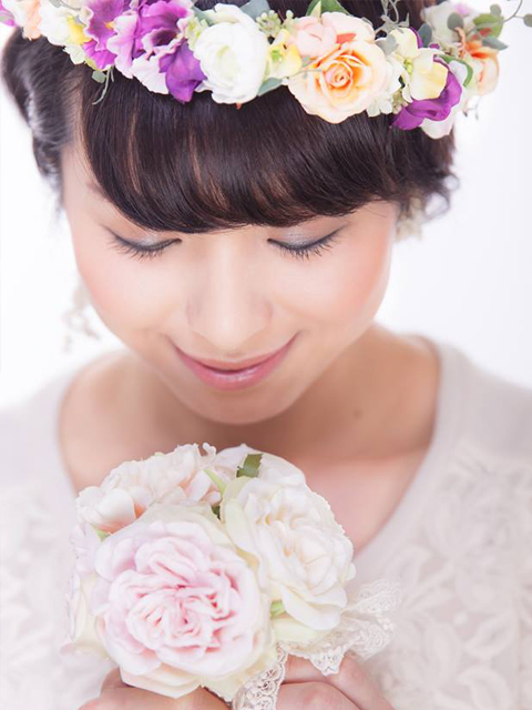 ラフィーユでは、花冠、ブーケ、その他アイテムなど、1つ1つ心を込めて手作りをしております。